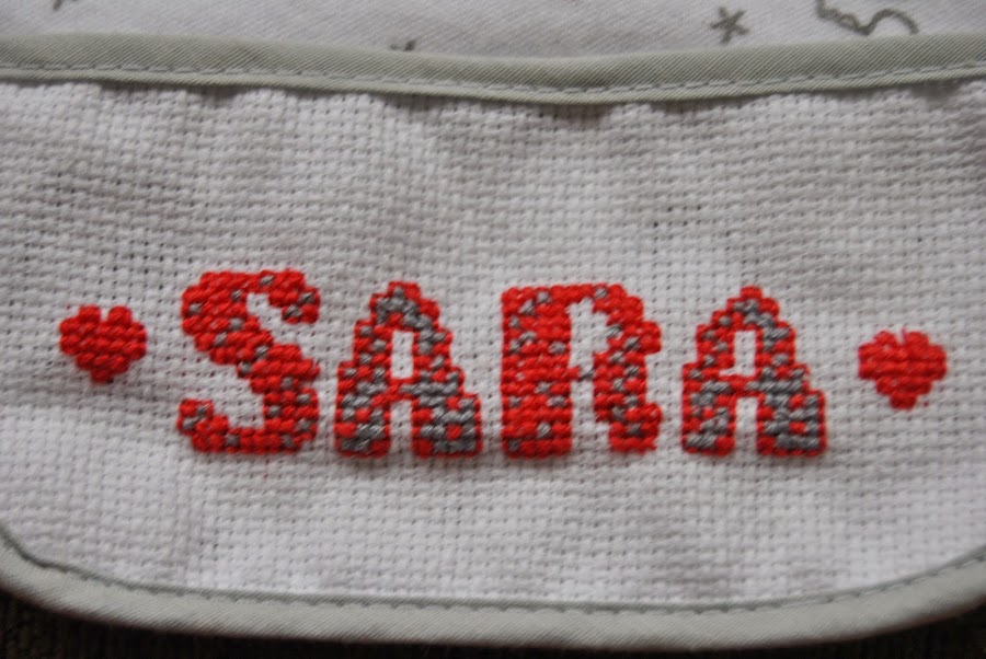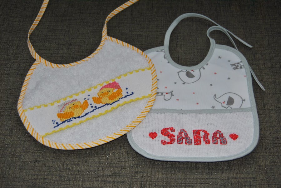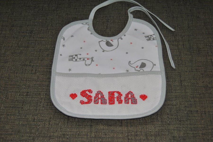 Sara nació ya hace varios meses, exactamente el 9 de abril cumplirá 4 meses, y para tener un detalle con sus papás además de un conjuntito de ropa les hice estos pequeños baberos.