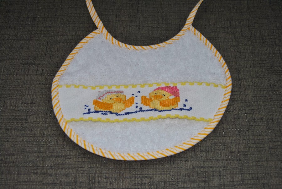 Vega nació hace poquito y como no la iba a hacer unos baberos para que fuera bien guapa. ¡Bienvenida al mundo y enhorabuena a sus papis y a su hermano mayor!