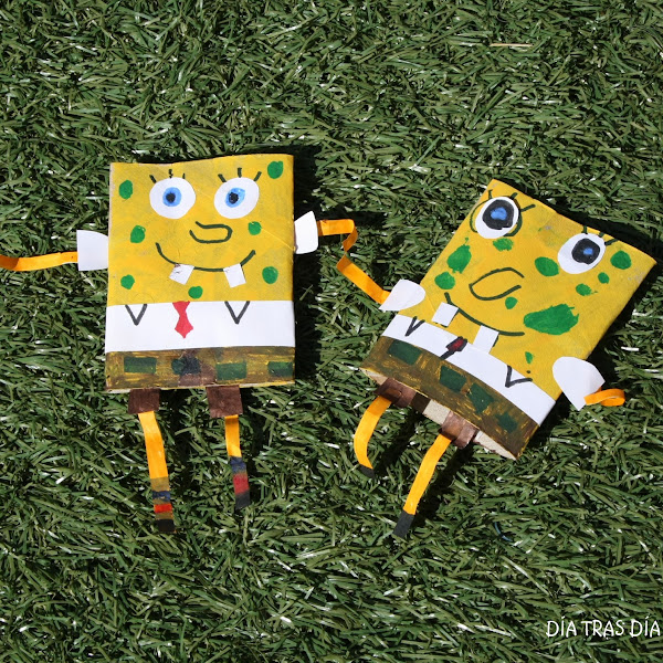 Desde hace ya bastante tiempo, Iván tenía guardado el cartón de un rollo de papel higiénico para hacer con él, según me dijo, un Bob Esponja. No tengo ni idea de si lo había visto en algún sitio o se le ocurrió a él solito... El caso es que cada dos por tres me estaba recordadndo que no se me fuese a ocurrir tirarlo, porque tenía que hacer su Bob Esponja. Ya ves, como si no tuviéramos oportunidad de conseguir otro cartón ;-)