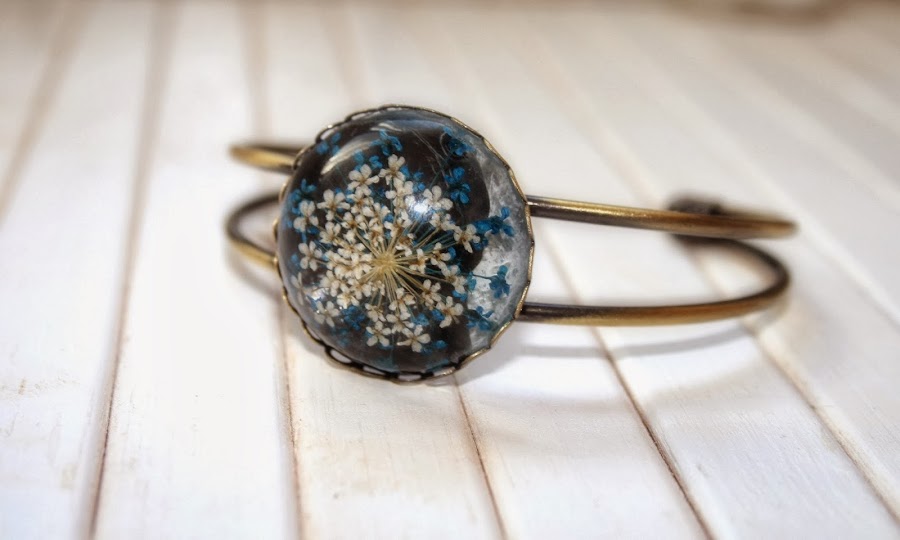 Hace mucho tiempo que no os doy la lata, he estado super liada con el trabajo, los estudios, las tiendas, etc. en fin, no me enrollo más. Os dejo con lo que interesa: unos brazaletes en bronce que como nota de color llevan un cabuchón de resina que encierra flores secas, me encantan y creo que lo tenía que compartir, así que aquí los tenéis, espero que os gusten.