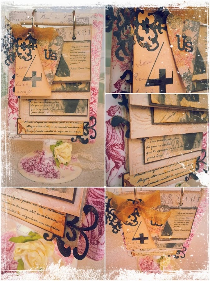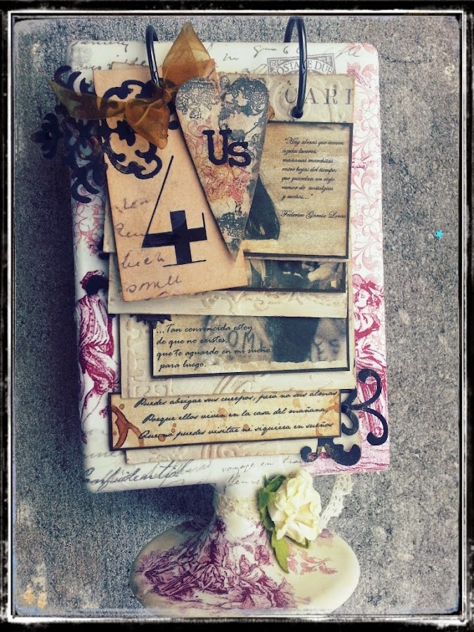 Un original soporte, que ateraremos con découpage dándole un aire romántico y más personal, para convertirlo en la base de este mini-álbum.
