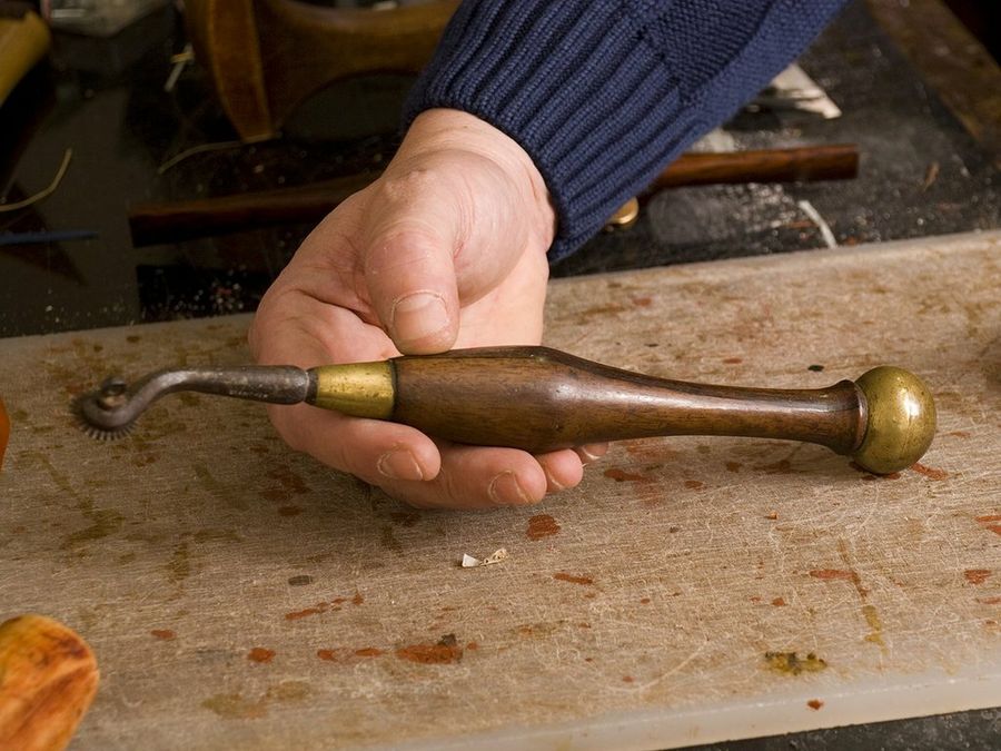 Los instrumentos de guarnicionaría más apreciados por Antonio Enrile son piezas del célebre fabricante francés Blanchard, y tienen casi un siglo. El mercado ofrece utensilios de fabricación actual, mucho más baratos, con los que podremos iniciarnos confeccionando los artículos más sencillos, como un pasador o un cinturón.