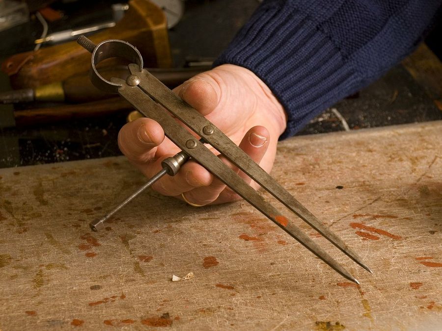 Con el compás marcaremos a distancias iguales los agujeros para las hebillas de los cinturones. También se utiliza para trazar en las bandas de piel la línea que seguirá la costura.