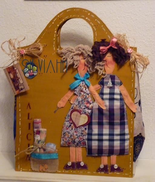 Y éste otro, para guardar telas, patrones etc, también con nombre y distintos detalles como tijeras, botones etc.