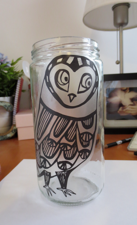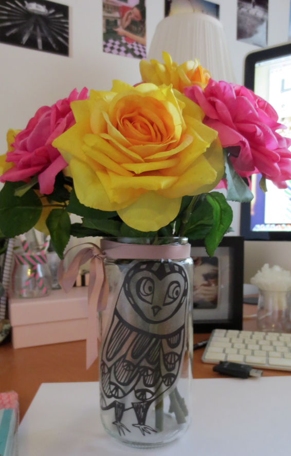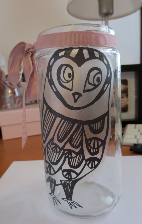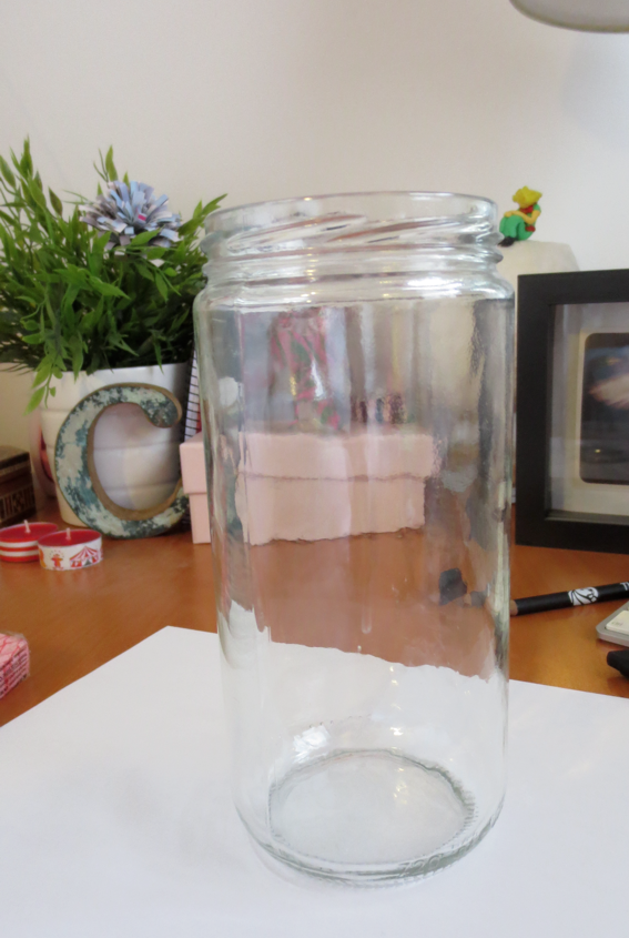 El grande lo tenía ya decidido, iría en la pared de mi estudio, pero ¿y los demás? Se me ocurrió que uno de los pequeños podría utilizarlo para crear un jarrón a partir de un bote de cristal reciclado. El resultado me ha gustado mucho.