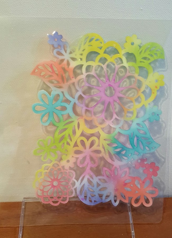 El buquet de flores, esta hecho con la Cameo y entintando con unas pocas de tintas en tonos suaves, brillantes
