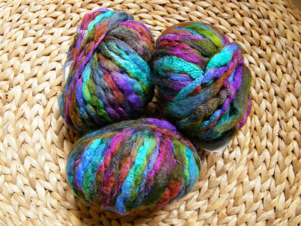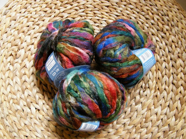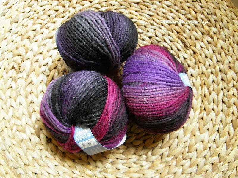 Lana Aurora, es XXL, grandota y de muchos colores, 50% lana y 50% microfibra hipoalérgica poliacrílica, se trabaja con agujas del 12/15, es muy suave e irregular, puedes hacerte cosas muy originales y calentitas, suelen salir labores muy esponjosas, ideal para los frioler@s coquet@s!!!!!!