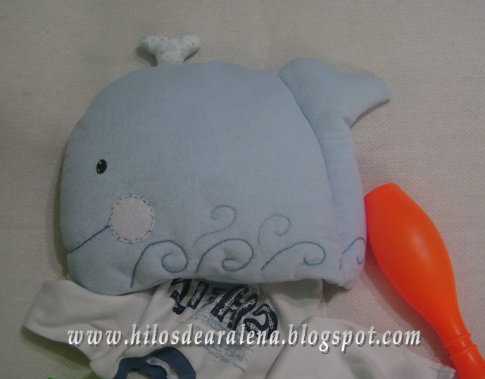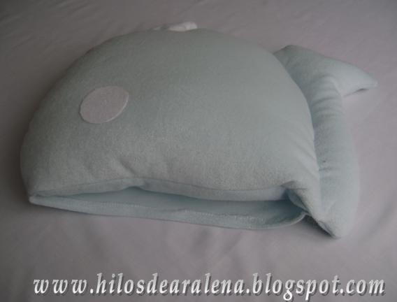 Esta simpática ballena nos sirve a toda hora. Simple y fácil de realizar , no solo decora la cama de un niño, también es una útil guadapijama.