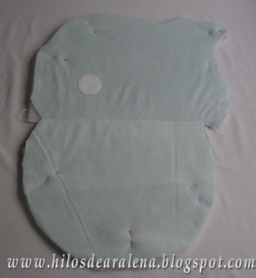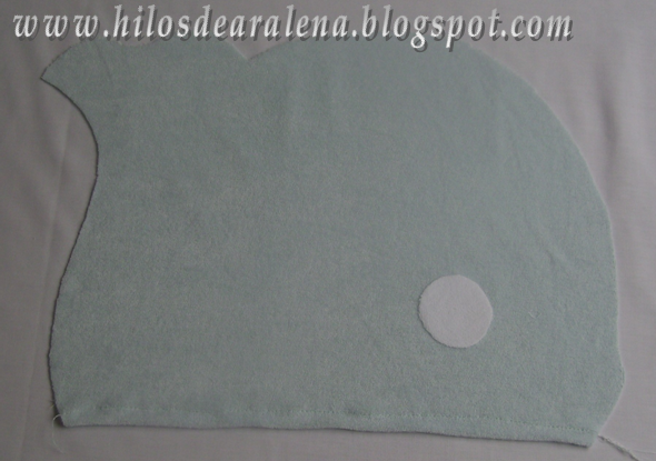 Antes que me olvide......como rubor de las mejillas, le coloqué 2 círculos blancos adheridos con entretela bifaz.