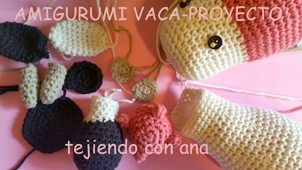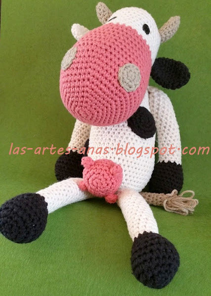 Me ha encantado hacer ESTA VAQUITA -AMIGURUMI, cuando vi el tutorial de MADRES HIPERACTIVAS, decidí que al igual que ella, CAMBIARÍA EL PATRÓN a mi gusto personal, he cambiado rabo cuernos y nariz LE HE AÑADIDO MANCHAS NEGRAS, lo he tejido con ALGODÓN ALABAMA , ROSA PALO, BLANCO ROTO, NEGRO Y BEIGE PARA EL RABITO Y CUERNOS utilizando un crochet del 3 y medio, por supuesto mas pequeño que el indicado en la madeja para que nuestra vaquita luzca impecable