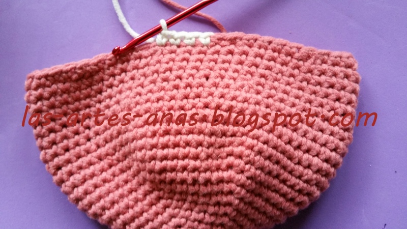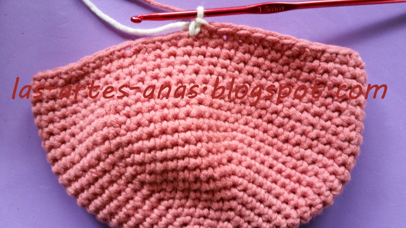 Comenzamos en color rosa palo, con una anillo mágico y tejiendo en espiral.