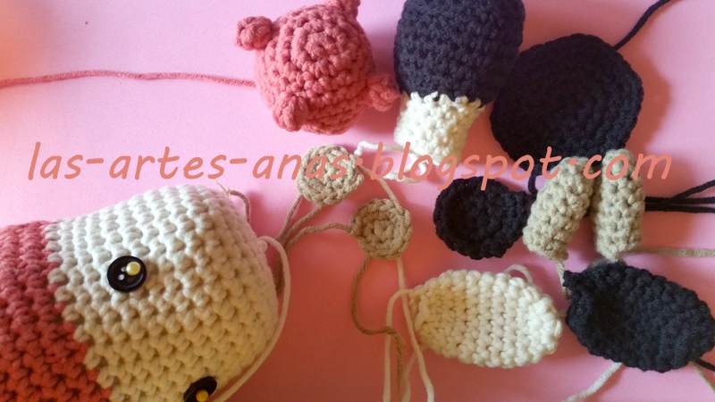 Cerramos con 1 pe dejando una hebra larga para unir al cuerpo. No se rellenan.