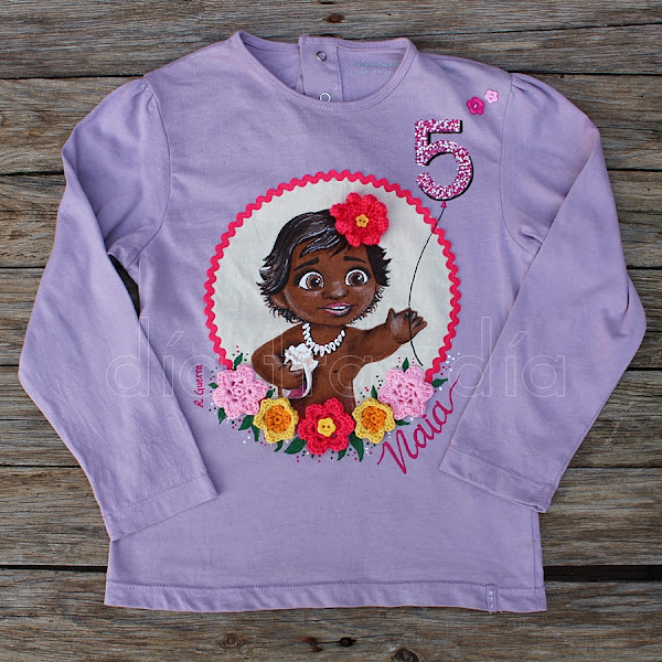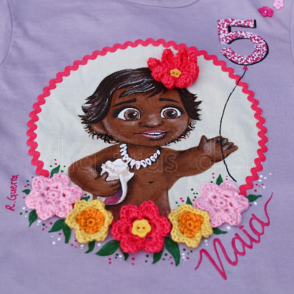 Pero si hay alguien especialista en hacer que no me aburra, esa es Cristina. Ella lleva varios años encargándome por estas fechas una camiseta para regalar a su peque Naia en su cumpleaños. Y cada año ha sido una camiseta distinta, con el personaje de dibujos animados que le gusta a la peque en ese momento.