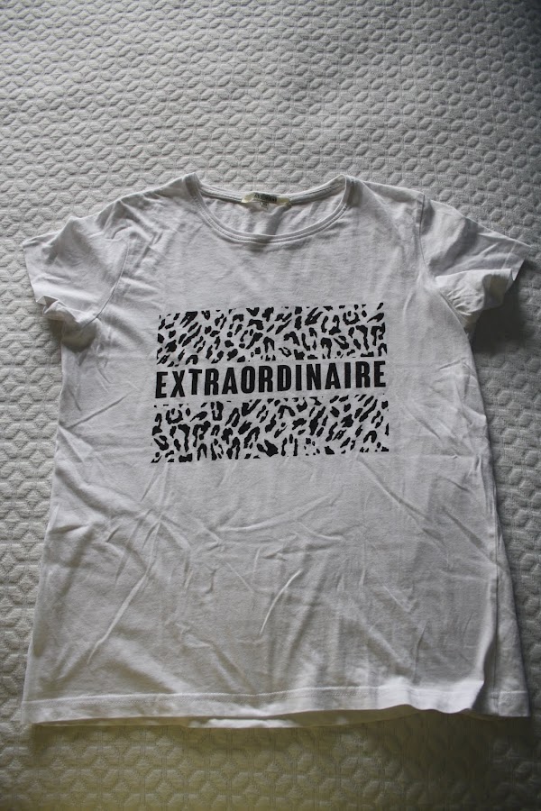 Os presento la primera camiseta. Es blanca, básica y con unas letras dibujadas.