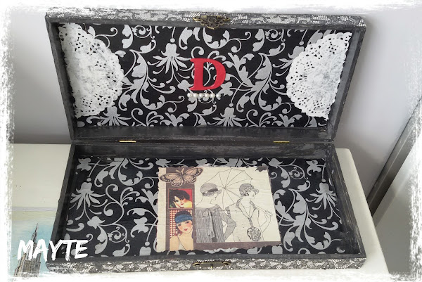 Esta caja lleva transfer, decaupage y figuritas que no se como se llaman