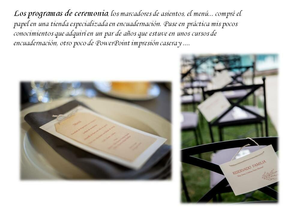 Hace mas o menos un año que empezamos a ir dando forma a esta boda. Nunca antes se me había ocurrido indagar en páginas y blog sobre estos asuntos. A día de hoy creo que puedo hacer una tesis doctoral sobre decoración y detalles para bodas y eventos.