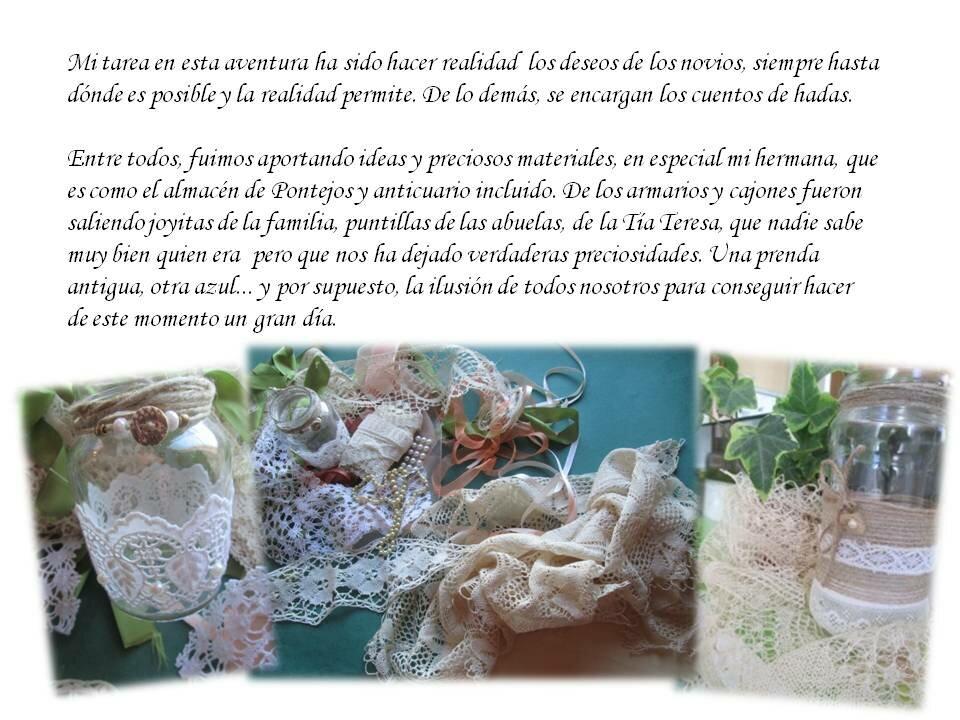 Hace mas o menos un año que empezamos a ir dando forma a esta boda. Nunca antes se me había ocurrido indagar en páginas y blog sobre estos asuntos. A día de hoy creo que puedo hacer una tesis doctoral sobre decoración y detalles para bodas y eventos.