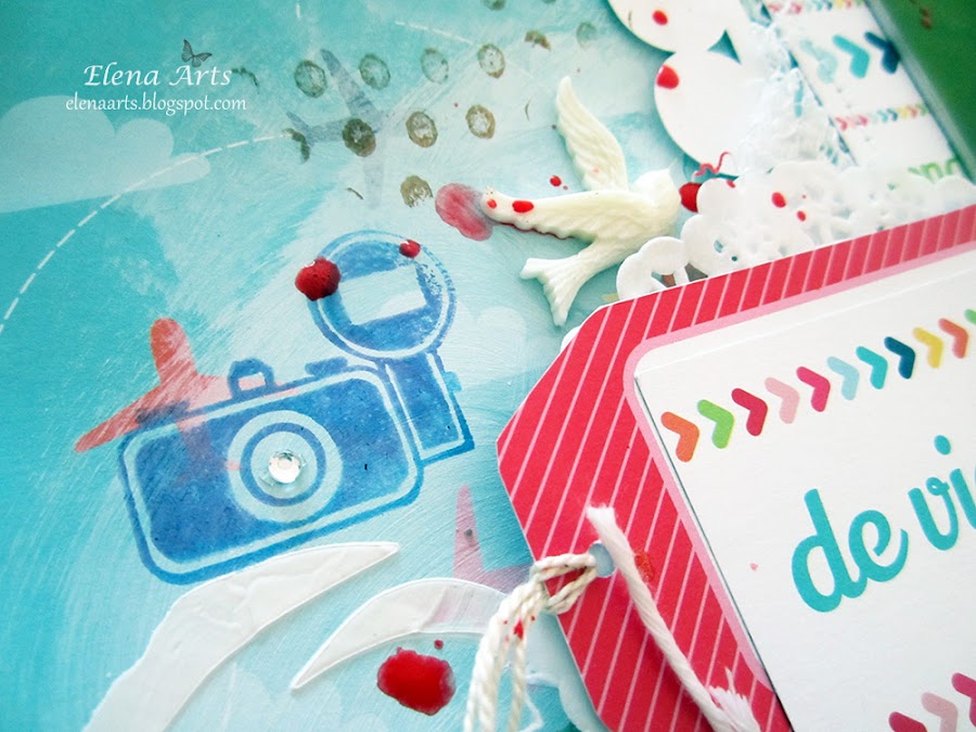 A pesar de que el estilo que os proponemos de scraplift es clean and simple, yo añadí unos toques de textura :))) es que no puedo resistir de no utilizar las técnicas de Mixed Media :)