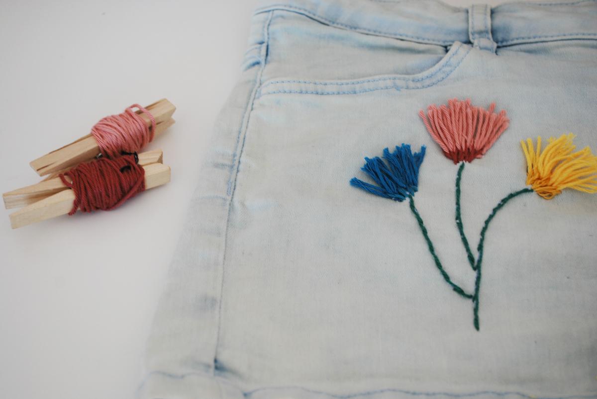 Así que hoy os quiero enseñar como han quedado los shorts vaqueros que he bordado.