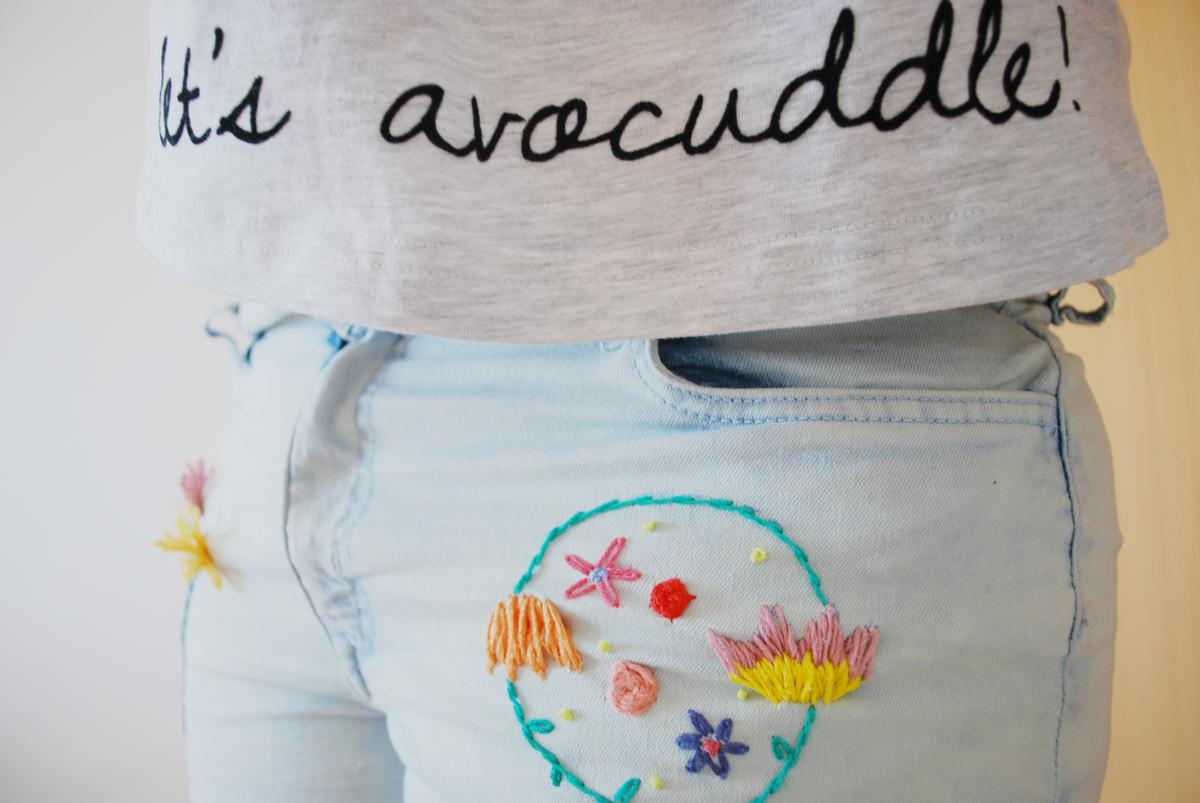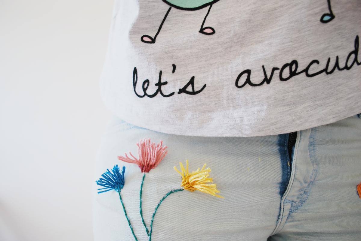 Para hacerlo, escogí unos vaqueros que tenía en casa que usé mucho el verano pasado, además al ser de un tejido elástico, ha sido mucho más fácil de bordar.