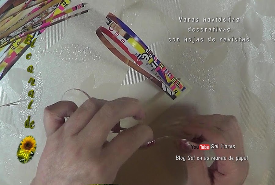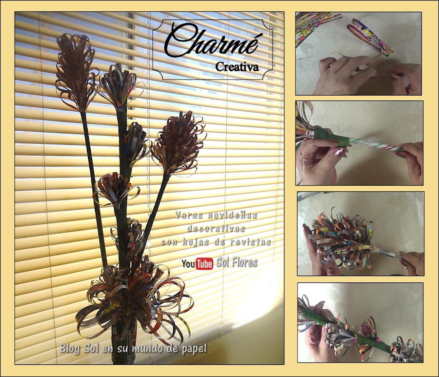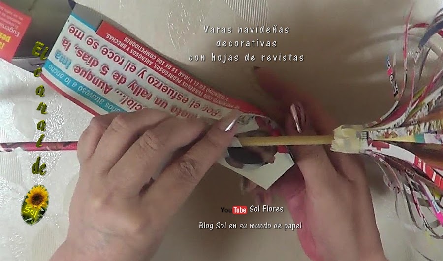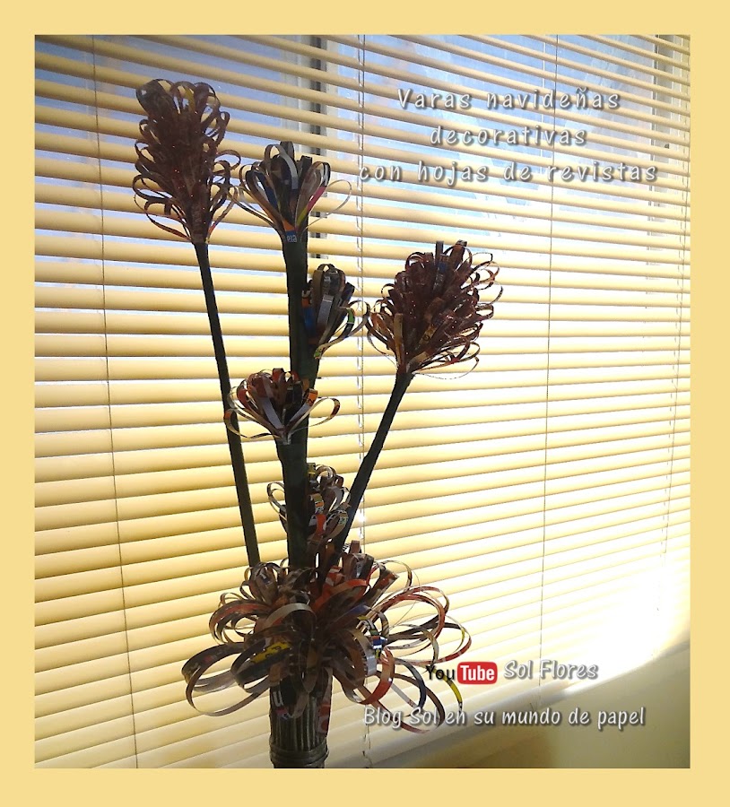 Varas navideñas con hojas de revistas