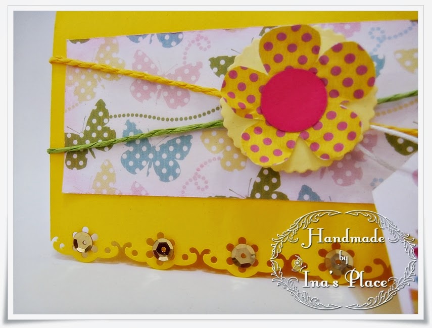 Personalmente el amarillo y el toque de fucsia le imprimen un aire muy femenino al diseño y puede resultar muy versatil ya que con solo cambiar la colilla que lleva con motivo de cumpleaños igual te puede servir para otro momento, no cree?