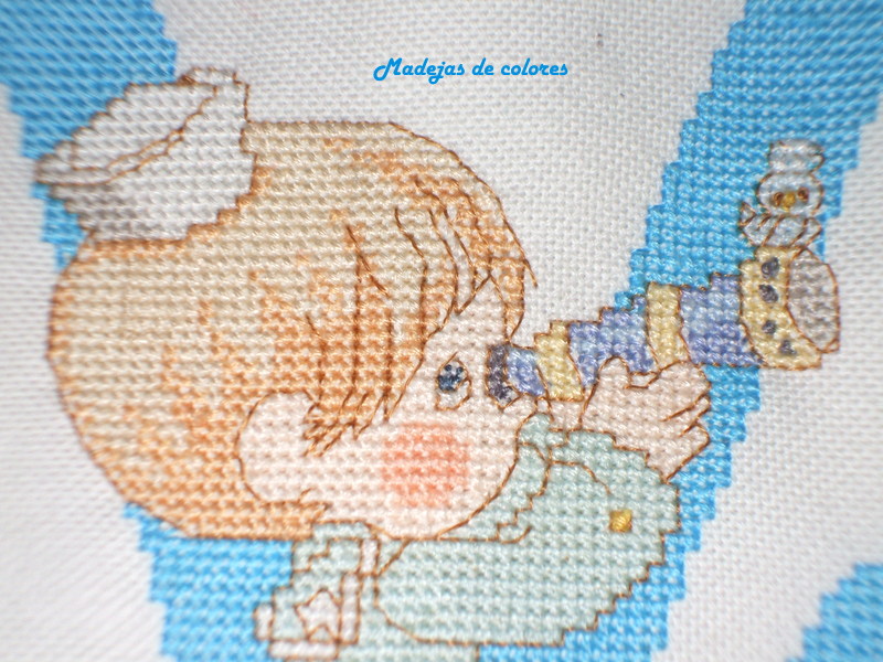 Está lleno de detalles, como el lazo en el pañal, el botón de la manga, el pajarito con gorrito de marinero. al igual que el niño.
