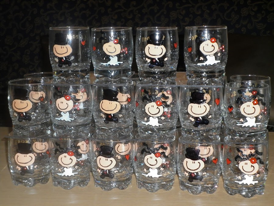 Estos vasos los he hecho para la boda de mi cuñada. Es el regalo que les ha dado a los invitados.
