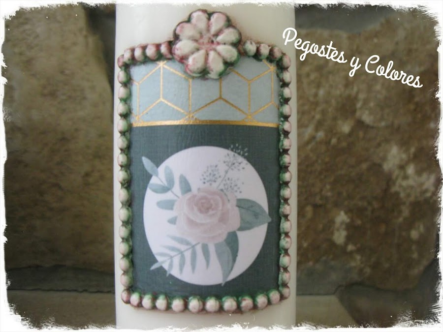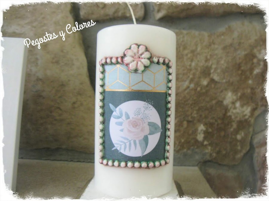 Vela con Decoupage y Adornos en Relieve