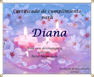 El blog de El Rincón de mis Amigas, propuso un hermoso reto para realizar en Mayo y publicar hoy, con un excelente tutorial proporcionado en esta ocasión de la mano de una gran experta en tecnicas de decoupage, relieves y muchas otras, Lola de El Refugio de Lirtea.