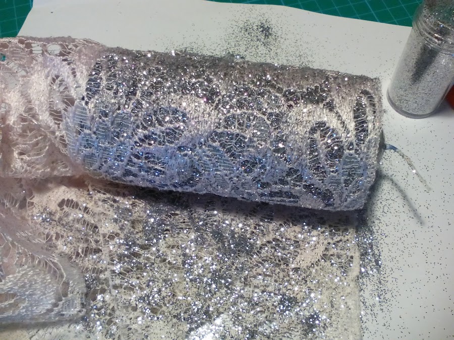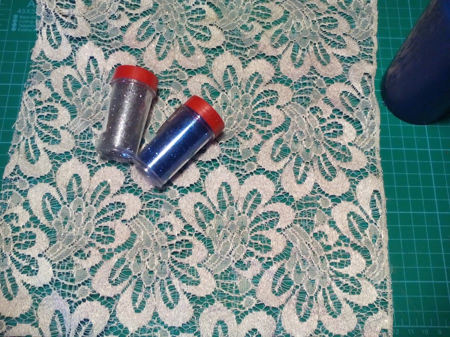 2. Escogemos puntilla y dos colores de purpurina.