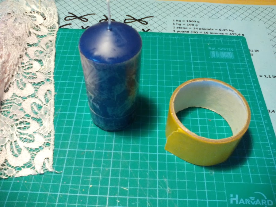 3. Encintar la vela con cinta de doble cara.