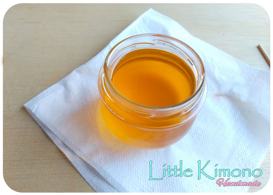 2. Vertemos el contenido en el bote de vidrio, debemos tener en cuenta que al enfriarse se contraerá un poco en el centro.