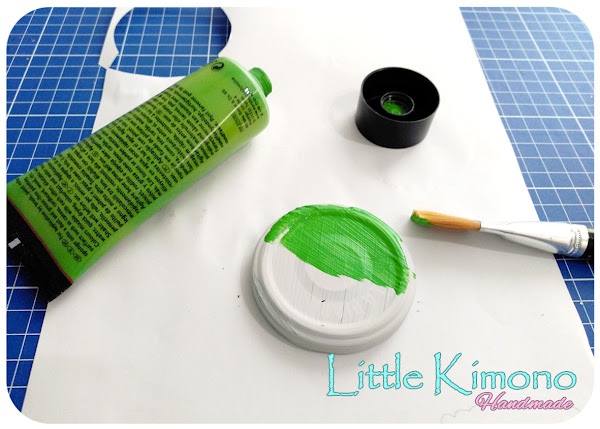 4. Mientras se enfría la vela vamos a pintar la tapa, en mi caso era negra así que la di primero una mano de chalk paint blanca, la dejé secar y luego una mano de acrílico "verde manzana".