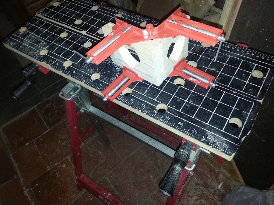 Con unos gatos de inglete comienzo a unir las partes de la vela. Siempre las zonas de unión las araño con un cúter, logrando así mayor adherencia.