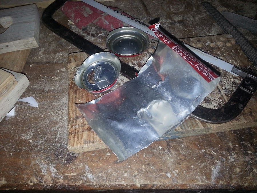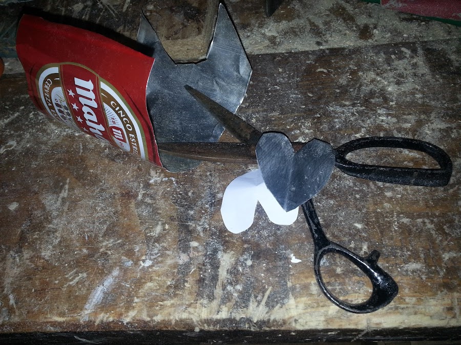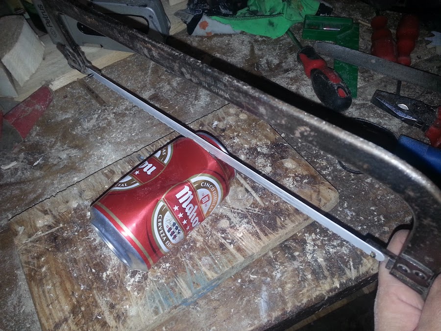 Llegó el turno a la lata de cerveza, la corto con la sierra de hierro, manual.