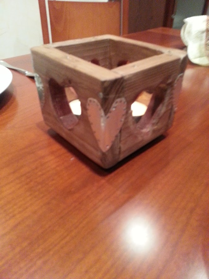 Como se aprecia en la foto, la base de la vela no va totalmente encajada, sobresale un poco, para dar un poco de realce. Me parece que dentro de lo rustico, le estiliza un poco.
