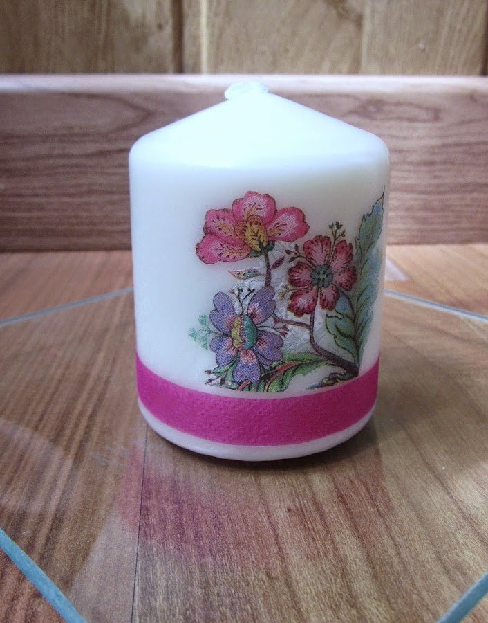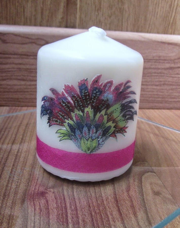 EMPECÉ VIENDO DIFERENTES TÉCNICAS PARA FIJAR LAS SERVILLETAS A LAS VELAS Y ME DECIDÍ POR EMPLEAR EL PAPEL QUE MI HIJA UTILIZA PARA LA HAMA.