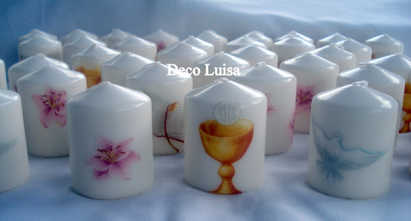 Como detalles de eventos también son ideales, así en época de comuniones me encargaron todas estas velas con motivo de comunión.