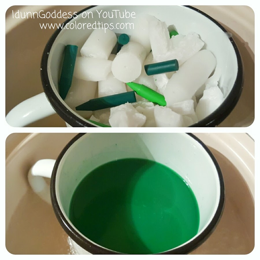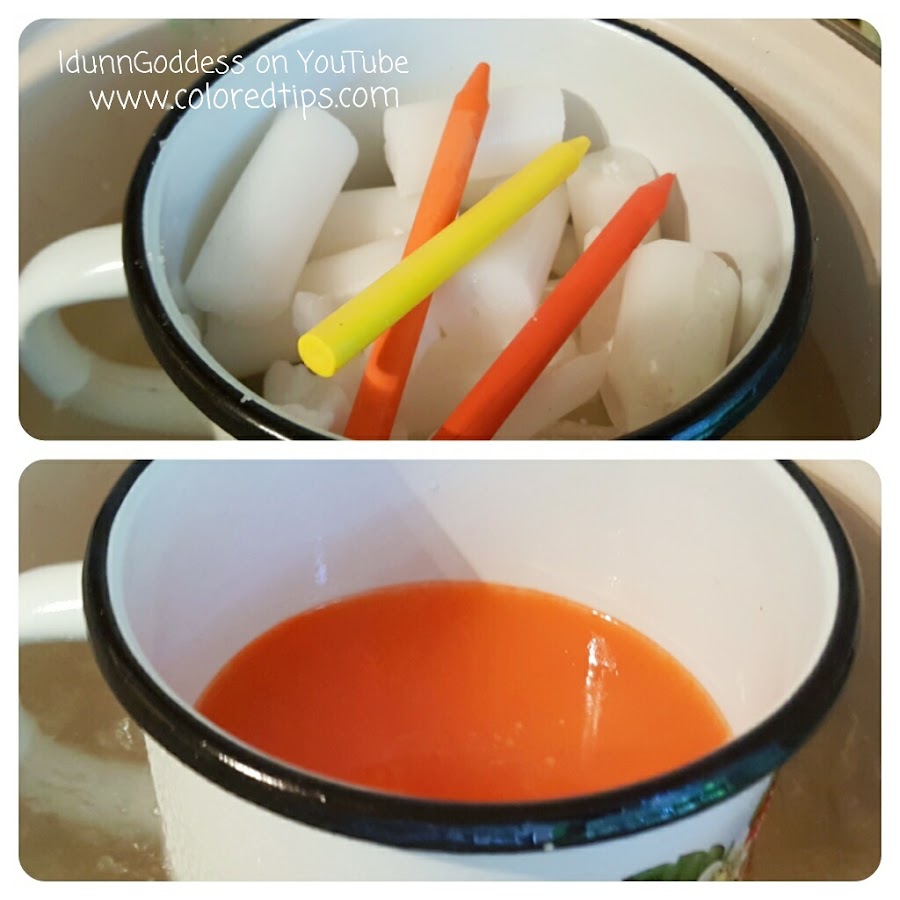 Por favor , mira el vídeo tutorial para irte guiando , en general tienes que cortar en pequeños pedazos las velas junto con los crayones de cera , derretir en baño " maría " nunca a fuego directo , llenar el envase con cuidado e inmediatamente sumergir en el agua helada . Colocar la mecha con la tuerca y el palillo de dientes .