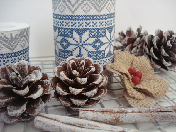 Las piñas y la canela están pintadas a pincel seco.