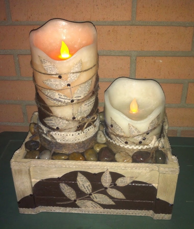 Bueno, bueno... ya llegó el miércoles, y como os avancé el pasado lunes, esta última semana he estado trabajando en la mezcla de dos técnicas que me apasionan: scrap y decoupage. Ambas técnicas las he aplicado sobre velas.