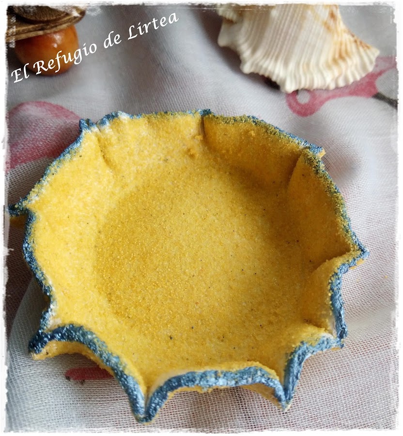 Poso estos redondeles sobre un base, me sirve la misma caja de la arena, coloco un redondel encima para darle forma y dejo secar.
