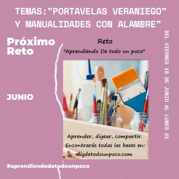 Bueno pues en el Aprendiendo de todo un poco de Anna me uno al tema de "Portavelas veraniego" y "Manualidades con alambre" lo dejaré para otra ocasión, estos temas fueron propuestos por las chicas de Decosurvintage y Maria José respectivamente.