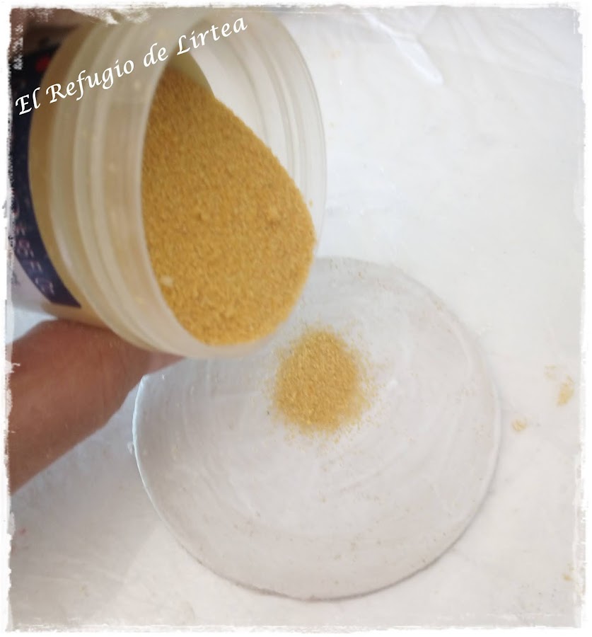 Para dar una nota de color, utilizó pintura metalizada y la aplico por todo el borde.¿No os recuerda la arena de la playa?