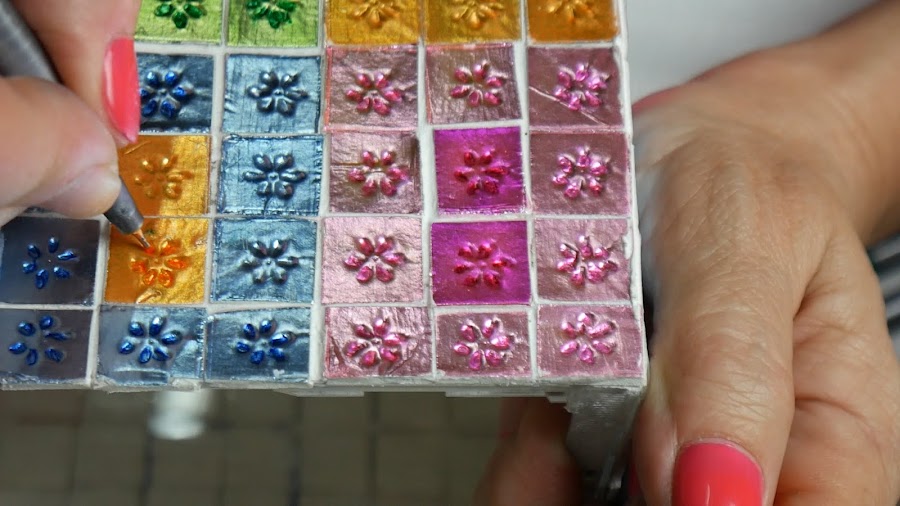 En este otro lado les muestro como puede quedar con otro relieve. Empleando formas circulares y como ven cambia totalmente el aspecto.