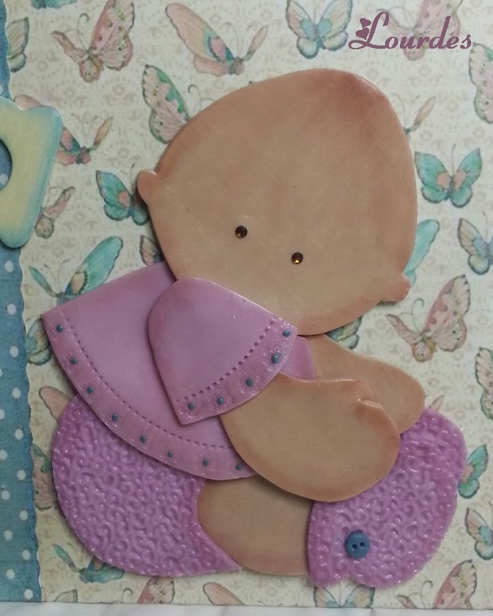 Cartel infantil realizado en arcilla polimérica, con letras de madera, tintas y flores de tela
