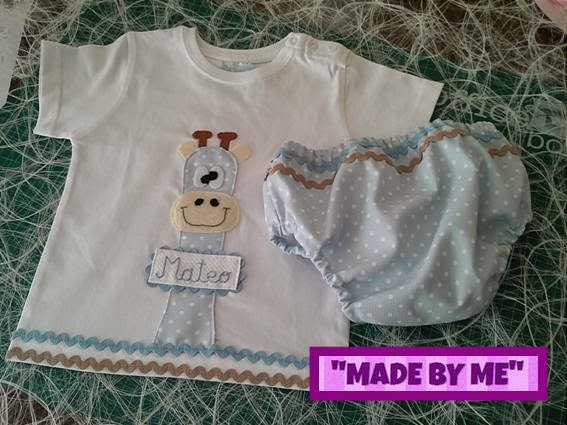 Bueno...seguimos con los conjuntos de cubrepañales y camisetas de muñequitas de "madebyme"...la verdad es que son super alegres, y encima, personalizadas con el nombre de los peques.