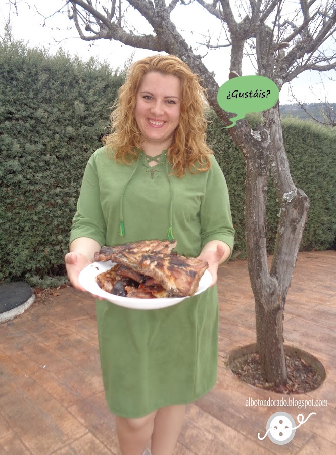 Pues bien, ella sabía que iba en Semana Santa a Madrid y quedamos en hacernos este vestido y posar juntas en un par de fotos, por circunstancias no pudo ser así que... me llevé el vestido a la sierra y lo estrené en una barbacoa que hizo mi familia.