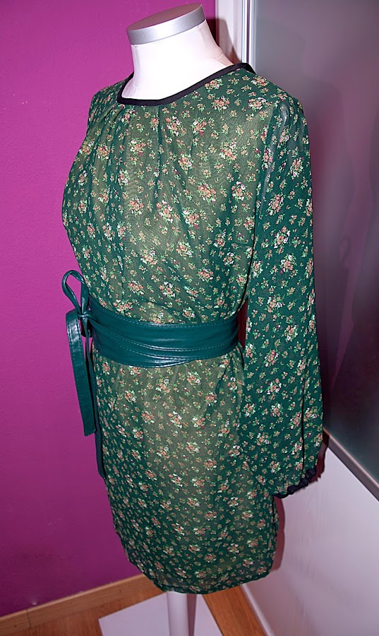 Una de las telas que tengo para esta primavera es una gasa verde con flores que me compre en una de mis visitas a Sevilla, estaba súper económica y me encanto el color y el estampado, el verde botella es un color que me encanta pero no se por que motivo tengo muy pocas prendas de ese color, y el estampado es muy sencillo pero muy fino, y ademas algo que me atrae infinitamente...no hay que plancharla!!!